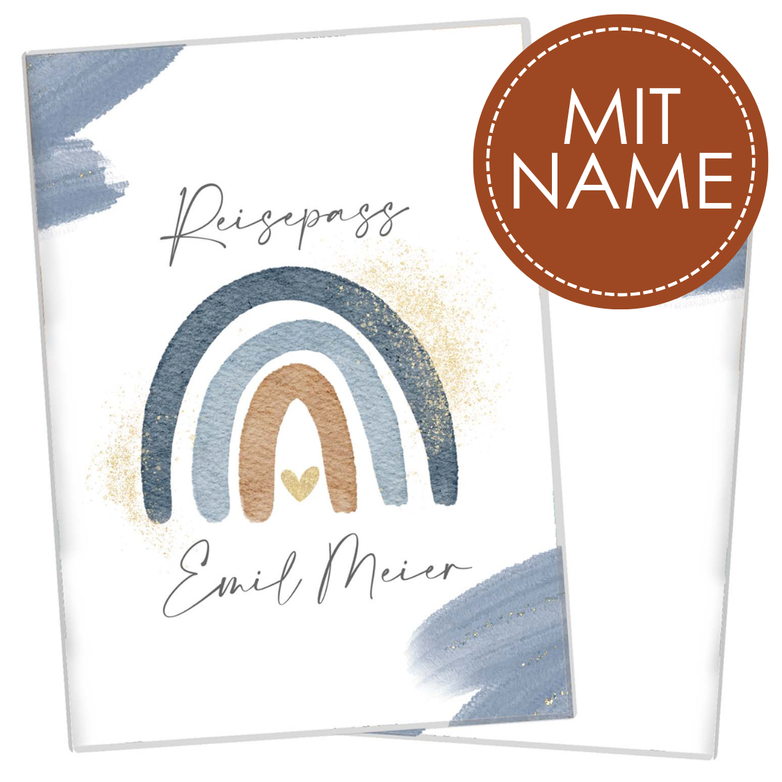 Wasserfarben Blau Reisepasshülle für Kinder Mit Personalisierung