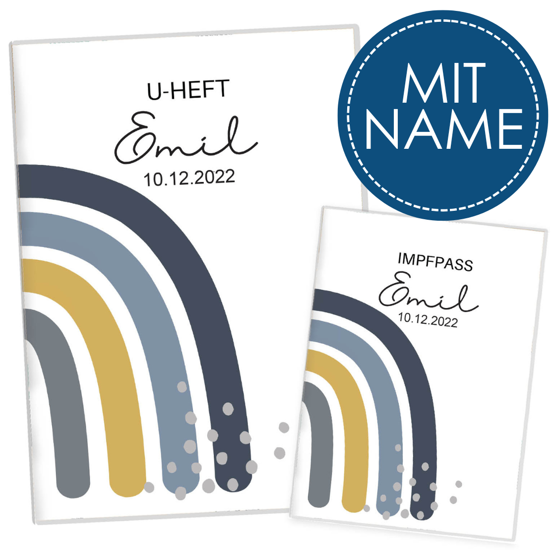 Regenbogen Blau U-Heft und Impfpasshülle Mit Personalisierung