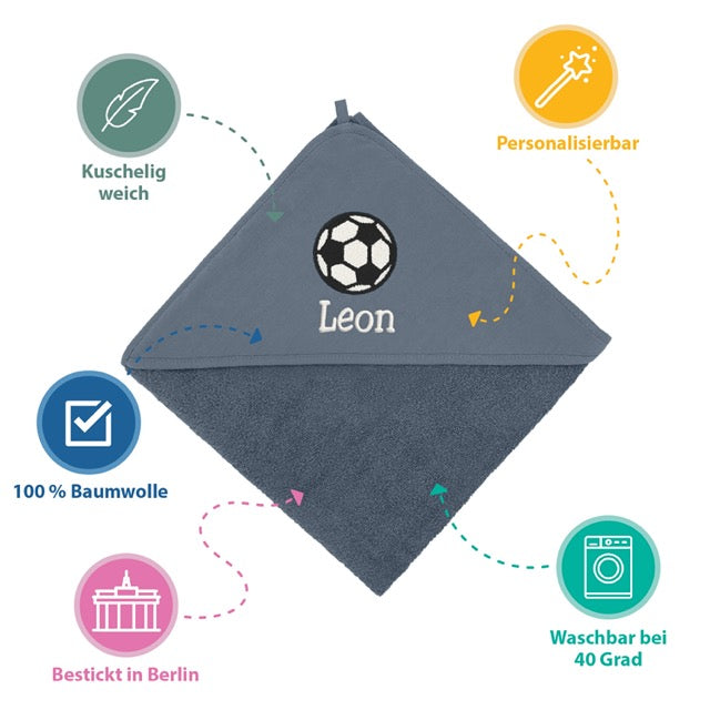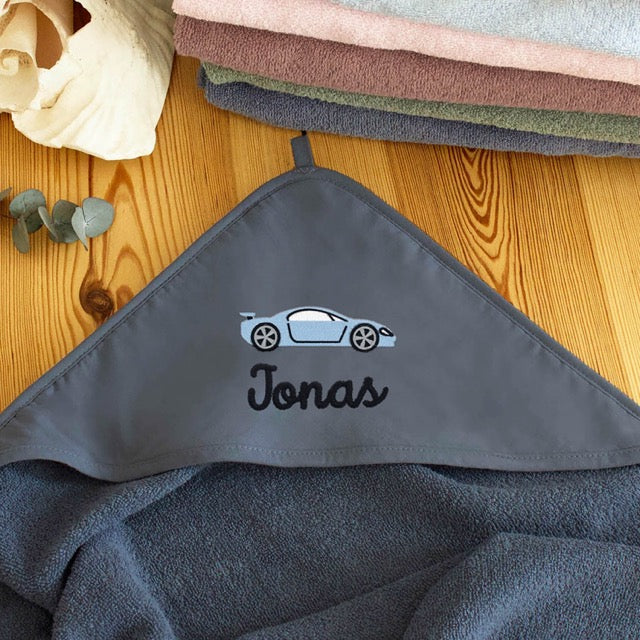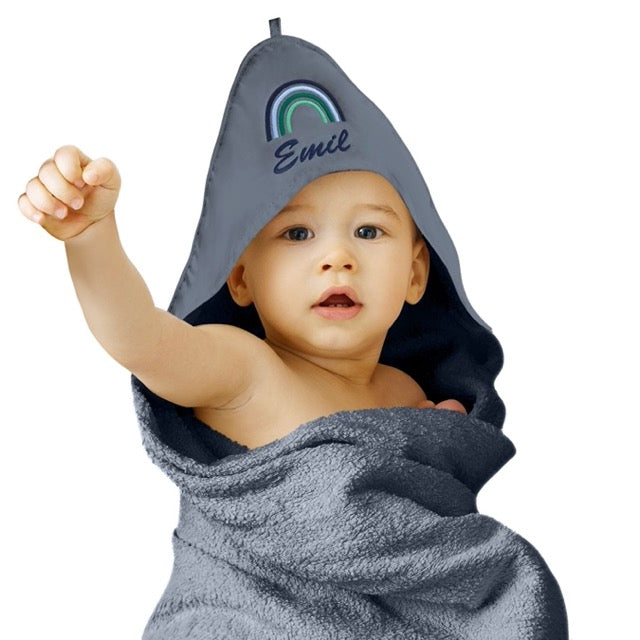 Blaugrau Kinder Kapuzenhandtuch Bestickt mit Namen oder Wunschtext