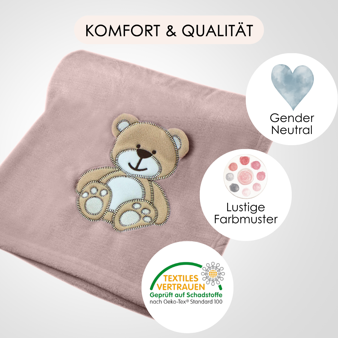 Decke Altrosa Mit Bär | Babydecke Bestickt
