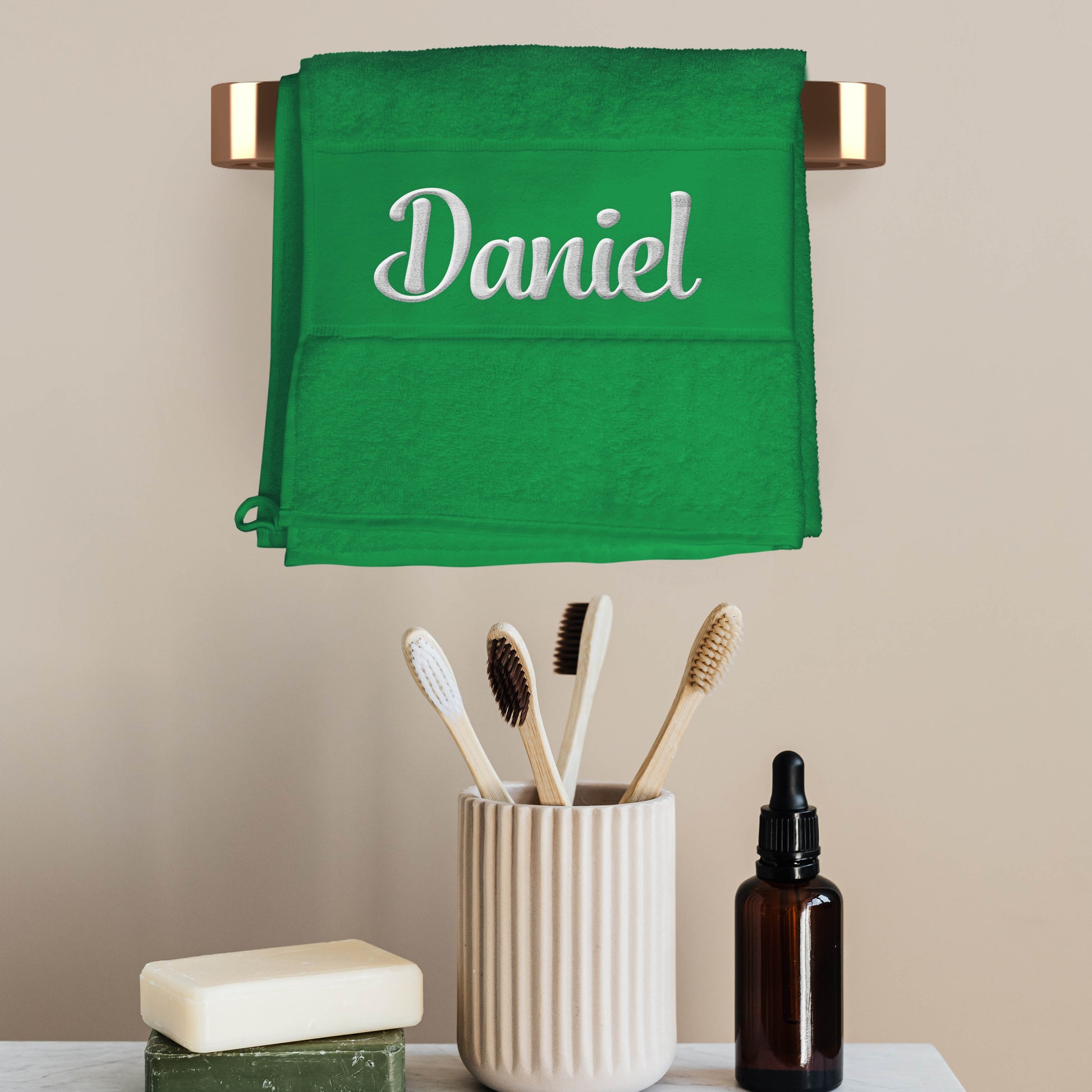 Grün Hochwertiges Händehandtuch Bestickt mit Namen