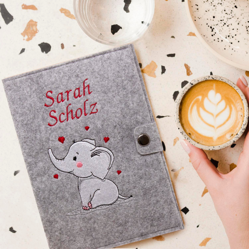 Elefant Mutterpasshülle aus Filz Mit Personalisierung