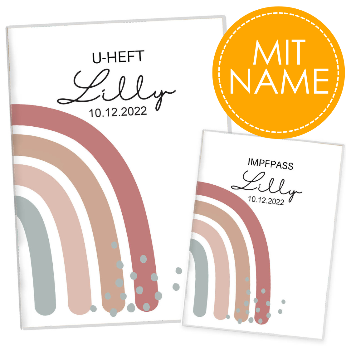 Regenbogen Altrosa U-Heft und Impfpasshülle Mit Personalisierung