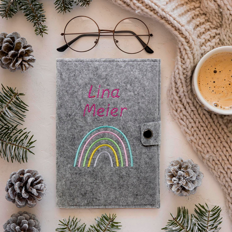 Regenbogen Pastell Mutterpasshülle aus Filz Mit Personalisierung