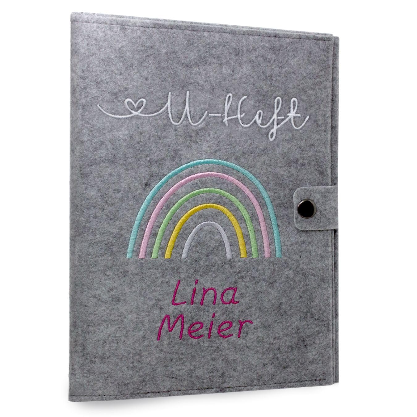 Regenbogen Pastell U-Heft und Impfpasshülle aus Filz Mit Personalisierung