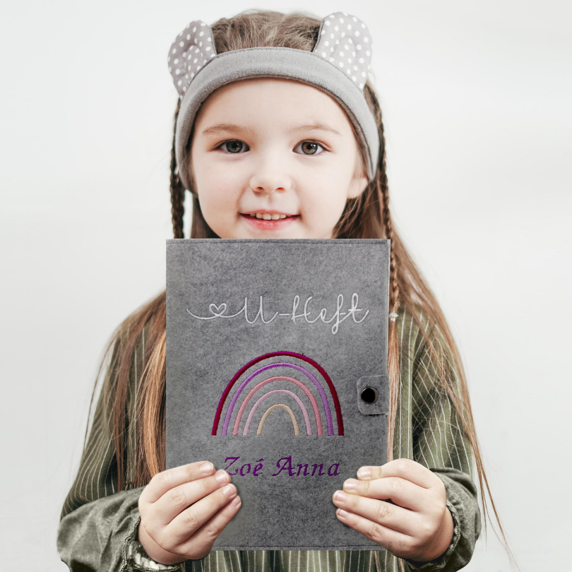 Regenbogen Rosa U-Heft und Impfpasshülle aus Filz Mit Personalisierung