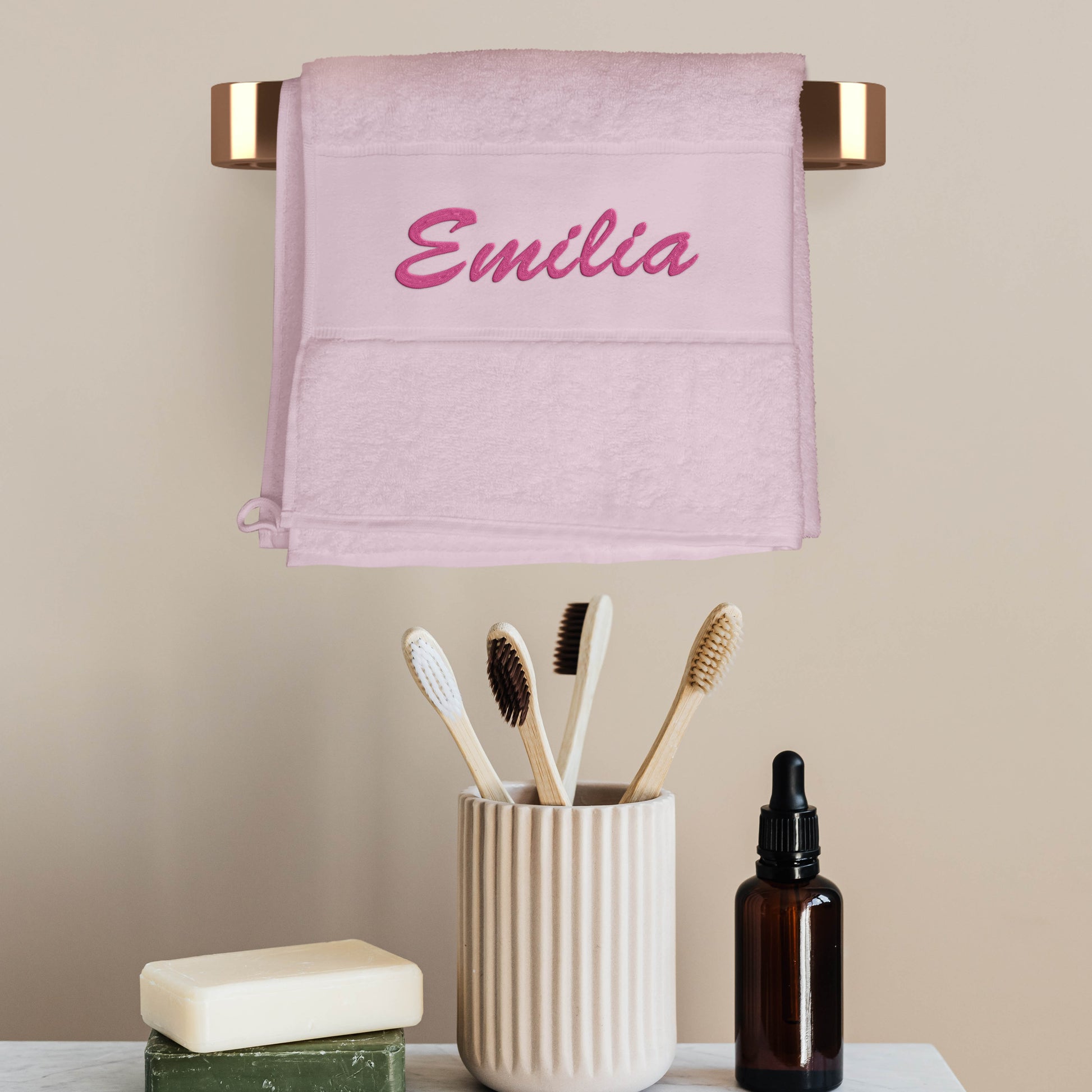 Rosa Hochwertiges Händehandtuch Bestickt mit Namen
